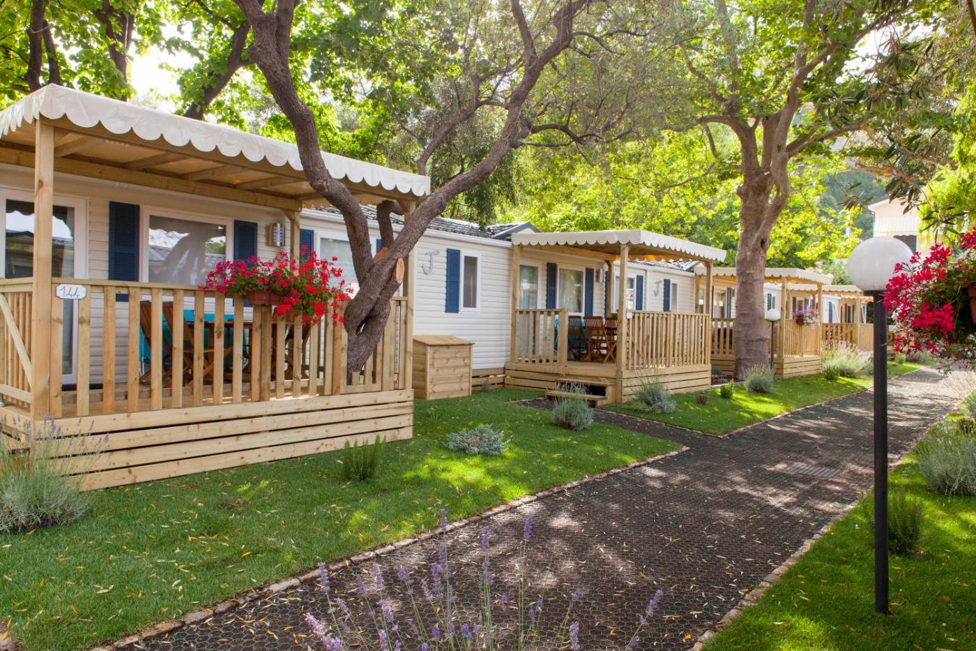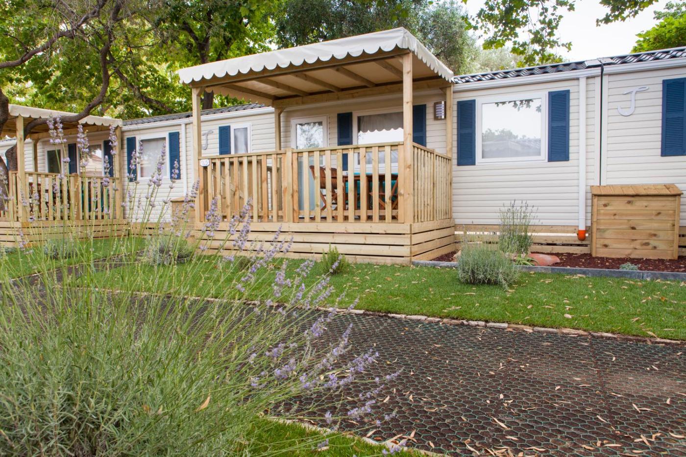 Casa Mobile. Casa mobile climatizzata con 1 soggiorno, 2 camere da letto separate e 2 bagni dotati di doccia. La cucina è provvista di utensili, piano cottura e frigorifero. La sistemazione dispone di area salotto, zona pranzo, patio e zona pranzo all’aperto. L’alloggio presenta 4 letti. ;