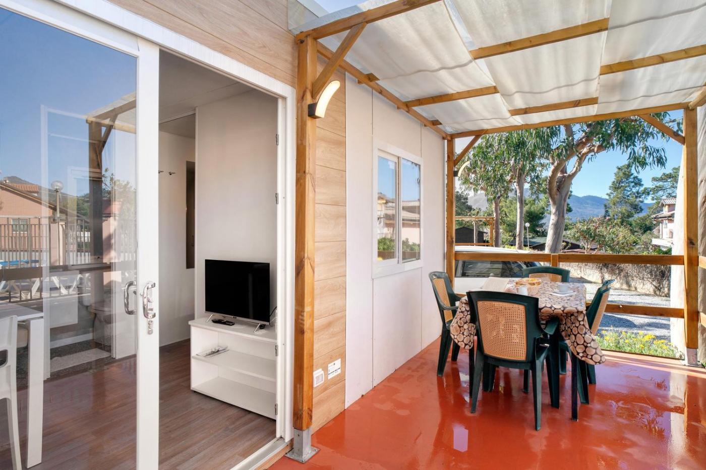 Casa Mobile. The mobile home features 2 bedrooms and 1 bathroom with a shower and free toiletries. The mobile homes kitchen, which has kitchenware and a microwave, is available for cooking and storing food. This mobile home offers air conditioning, a TV with cable channels and a patio. The unit offers 3 beds.