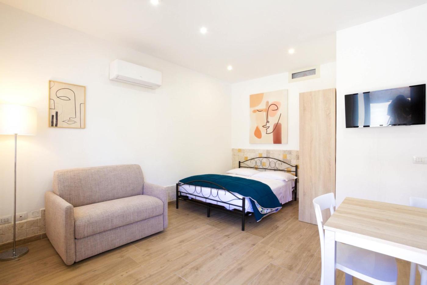 Appartamento Monolocale con 1 Letto Matrimoniale. Boasting a private entrance, this air-conditioned apartment comes with a kitchen, 1 bedroom and 1 bathroom with a shower and a bidet. In the fully equipped kitchen, guests will find a stovetop, a refrigerator, kitchenware and an oven. The apartment features a coffee machine, a dining area, a wardrobe, a flat-screen TV with satellite channels, as well as garden views. The unit has 2 beds.