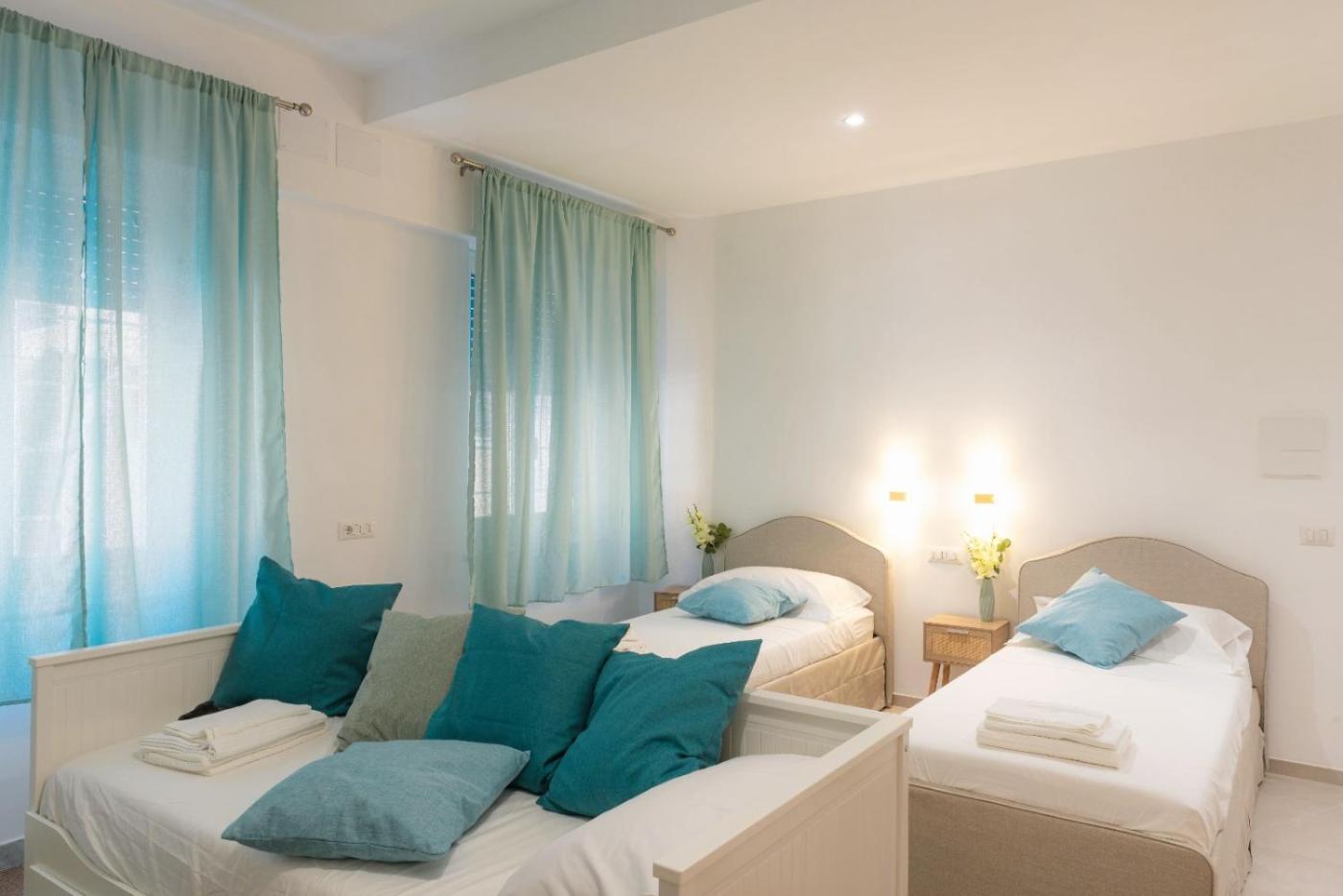 Appartamento Deluxe con 2 Camere da Letto e Balcone. This spacious apartment consists of 1 living room, 2 separate bedrooms and 2 bathrooms with a shower and free toiletries. In the fully equipped kitchen, guests will find a stovetop, a refrigerator, a dishwasher and kitchenware. This air-conditioned apartment is comprised of a dining area, a flat-screen TV with streaming services a washing machine and a balcony. The unit offers 7 beds. ;
