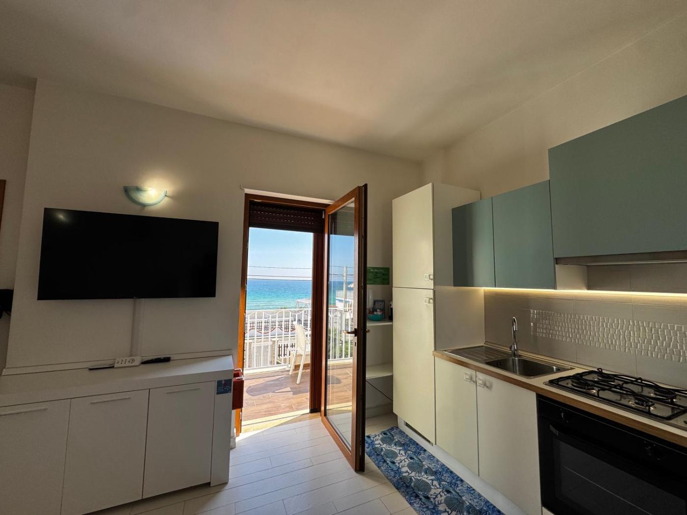 Questo appartamento prevede 1 camera da letto, 1 bagno, lenzuola, asciugamani, una TV a schermo piatto, una zona pranzo, una cucina con utensili e una terrazza con vista sul mare.